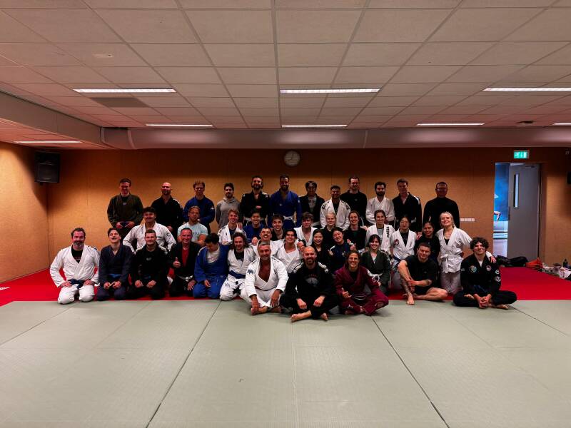 We trainen vijf keer per week, verdeeld over LeidenHQ in het USC en Lisse, waar de sfeer net zo sterk is als de guillotine-chokes.